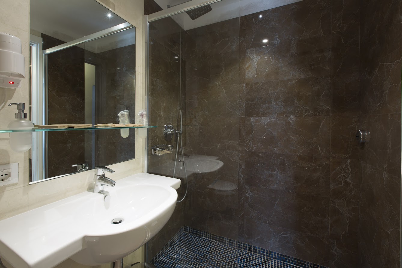 La camera è composta da un letto matrimoniale ed uno singolo, oppure a richiesta , 3 letti singoli. L’accostamento tra gli arredi, sobri e moderni, ed i colori tenui ed eleganti, rende l’ambiente molto luminoso e rilassante. Inoltre le camere sono insonorizzate, così da garantire la massima tranquillità in ogni momento del giorno e della notte.